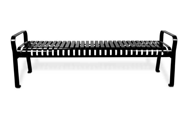 Simple slat steel flat benches featuring raised armreststhe perfect addition to any sidewalk, entryway or courtyard area. These commercial grade benches are constructed with high quality steel and welded together to withstand all the usage they will invite.