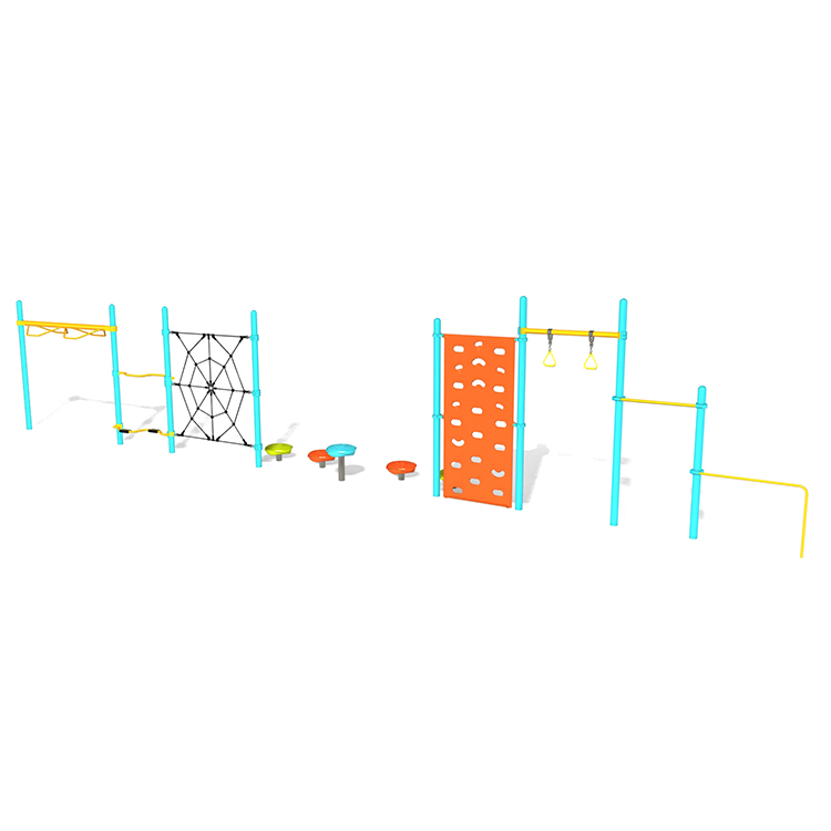 Junior Gym is a simple, budget-friendly playground structure that promotes fitness for children ages 5 to 12 years. This playground is an engaging and affordable option for small schools, churches, or parks in need of a basic community play space. Junior Gym is also an ideal structure for adding other types of playground equipment later as funds are allocated, such as slides, spring riders, or a classic swing set.