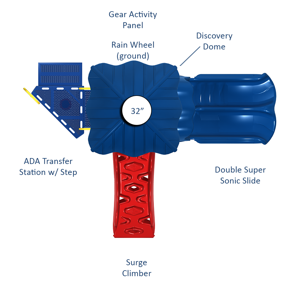 Experience non-stop excitement on the Little Dipper playground! From the exhilarating Double Super Sonic Slide and challenging Surge Climber to the imaginative Gear Activity Panel and captivating Rain Wheel, kids will be endlessly entertained. Join us for a world of sliding, climbing, and sensory play fun, and give children an unforgettable outdoor adventure theyll want to enjoy over and over!