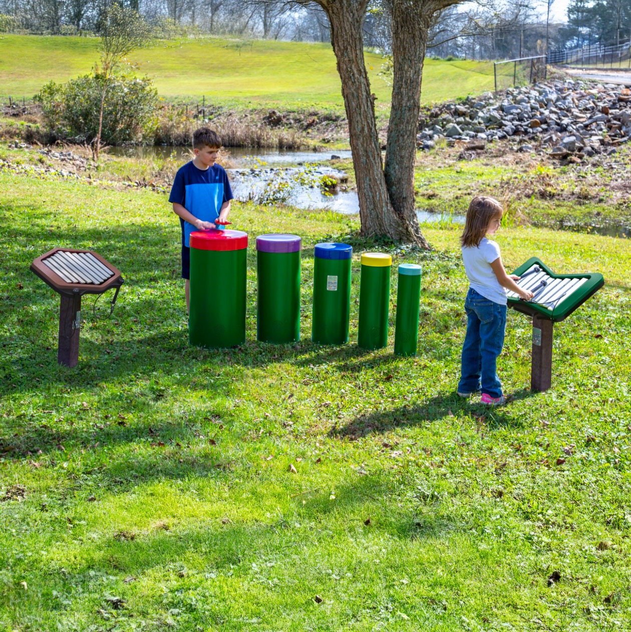- Multigenerational, Interactive Play, Durable, Sculptural, Perfectly Tuned, No Wrong Notes, All Abilities, All Ages, Everyone Can Play!