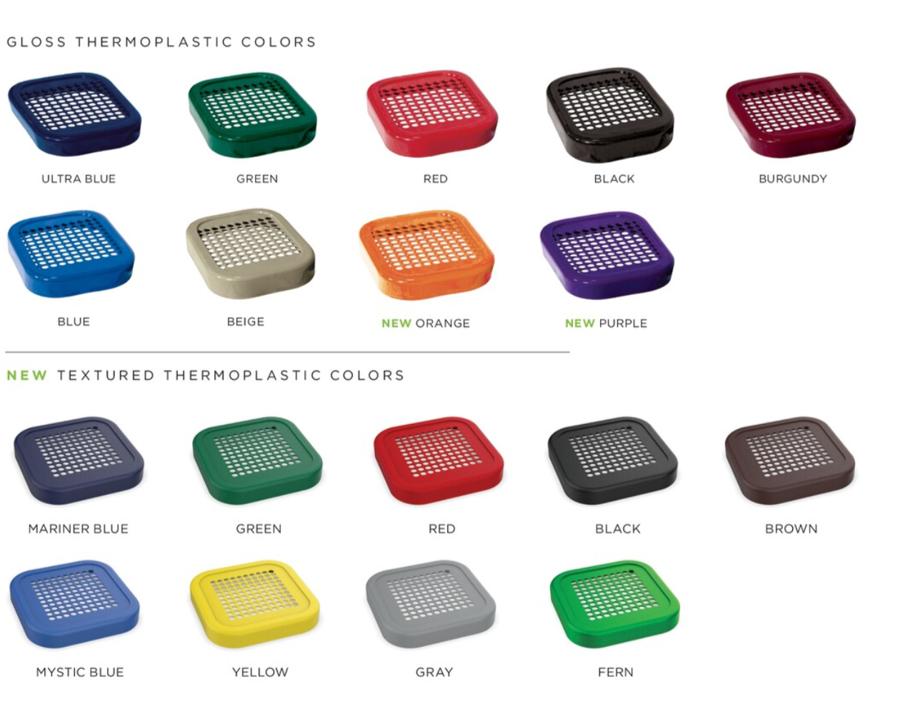 - Flat Top Lid: 16ga steel top with thermoplastic coating 24-1/4" diameter. 8" diameter center opening.